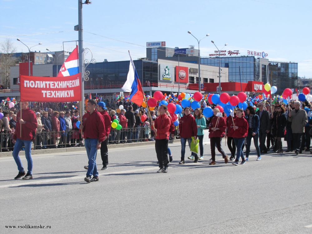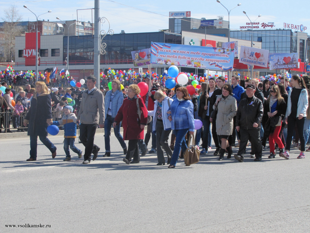 Самые многочисленные и активные участники шествия представляли градообразующие предприятия ПАО «Уралкалий», АО «Соликамскбумпром», ОАО «Соликамский магниевый завод», АО «Соликамский завод «Урал». Традиционно большим количеством участников были отмечены образовательные учреждения города.