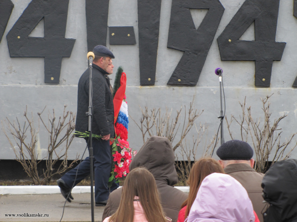 За полчаса до начала у Мемориала памяти умершим от ран в госпиталях Соликамска собирался народ, выставляли ограждение. За 5 минут до начала на сцене появились глава города, сотрудники администрации, общественных организаций.
