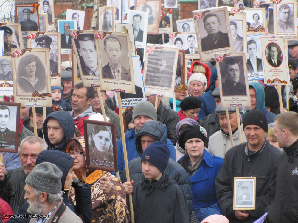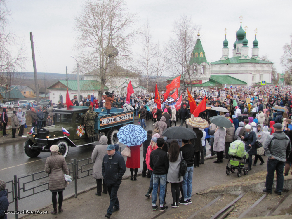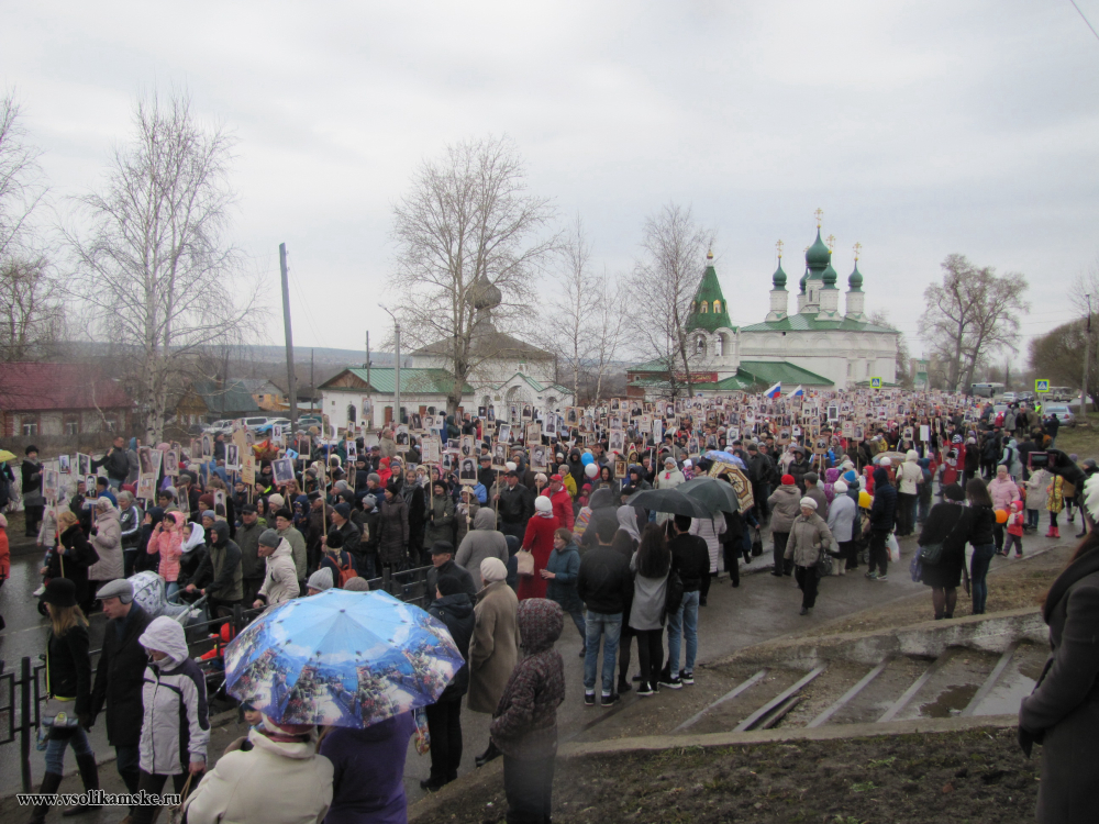 Соликамск в этом году в третий раз присоединился к всероссийской акции «Бессмертный полк». Колонна участников акции прошла по ул. 20-летия Победы, ул. Революции до Воскресенской площади.