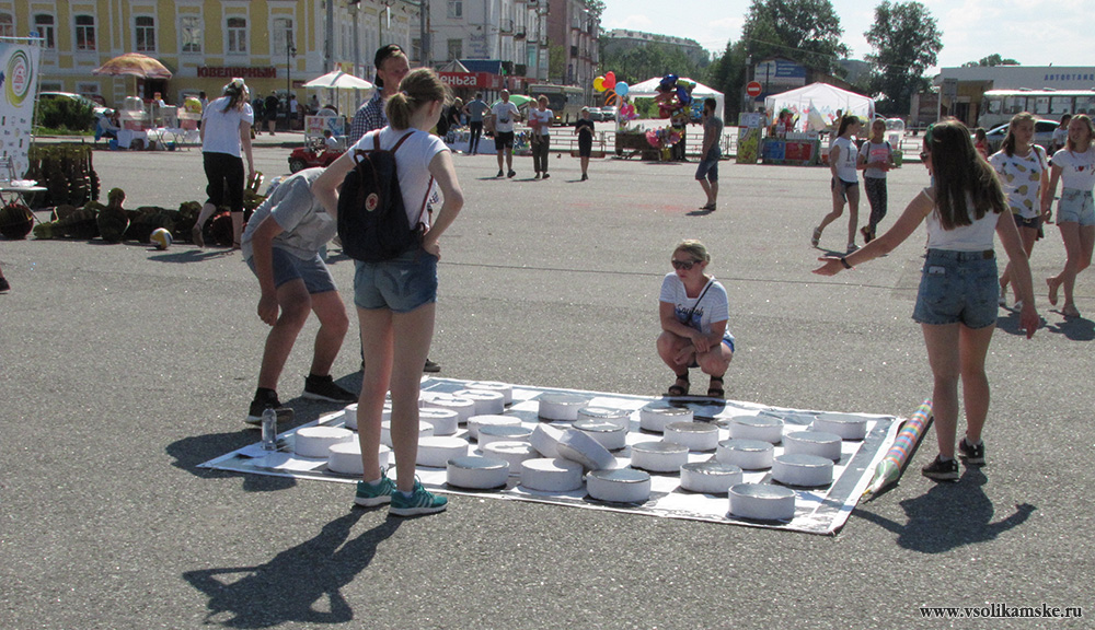 В 15:30 за рекой еще играли в волейбол, на сцене шла подготовка группы cover фest. Народ понемногу наполнял Воскресенскую площадь.