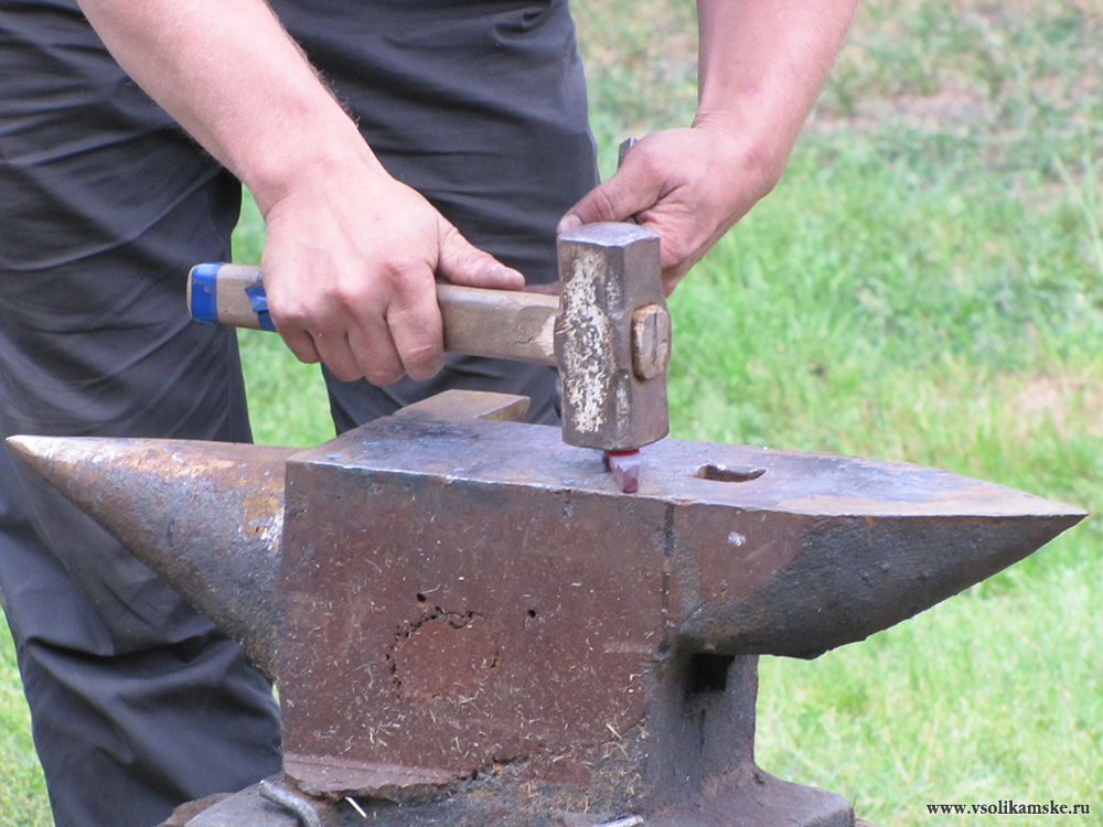 Справа от сцены работает небольшая кузнечная площадка.