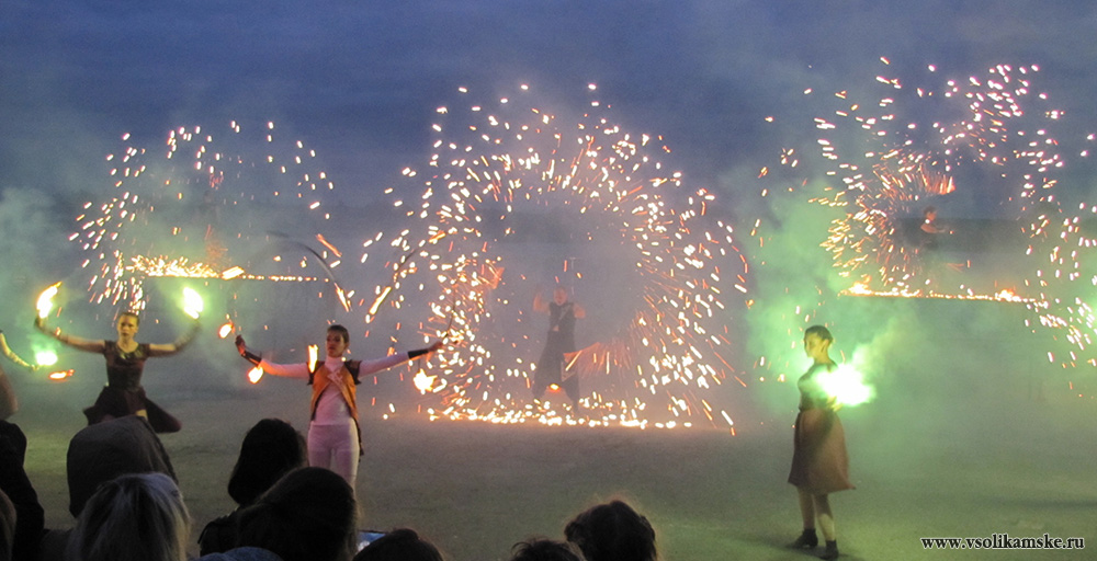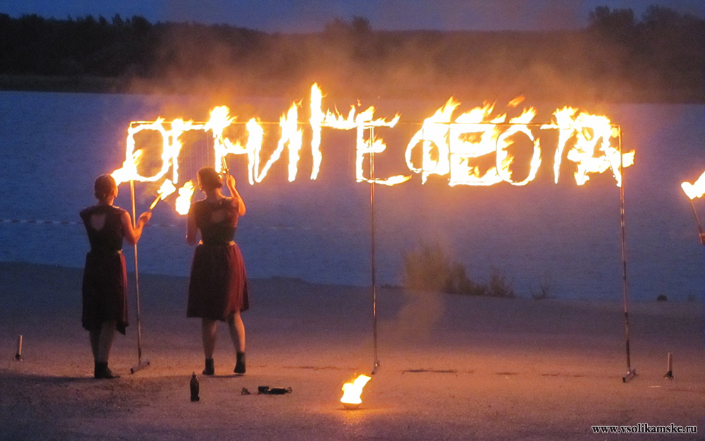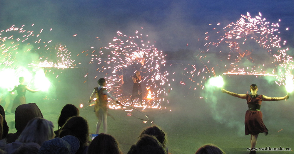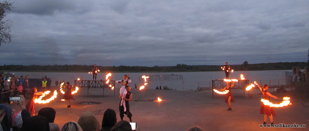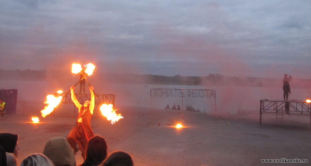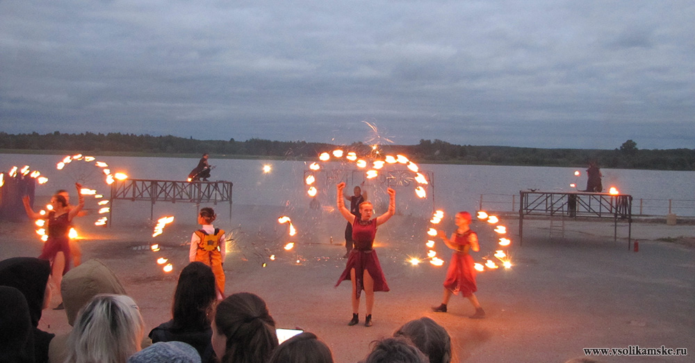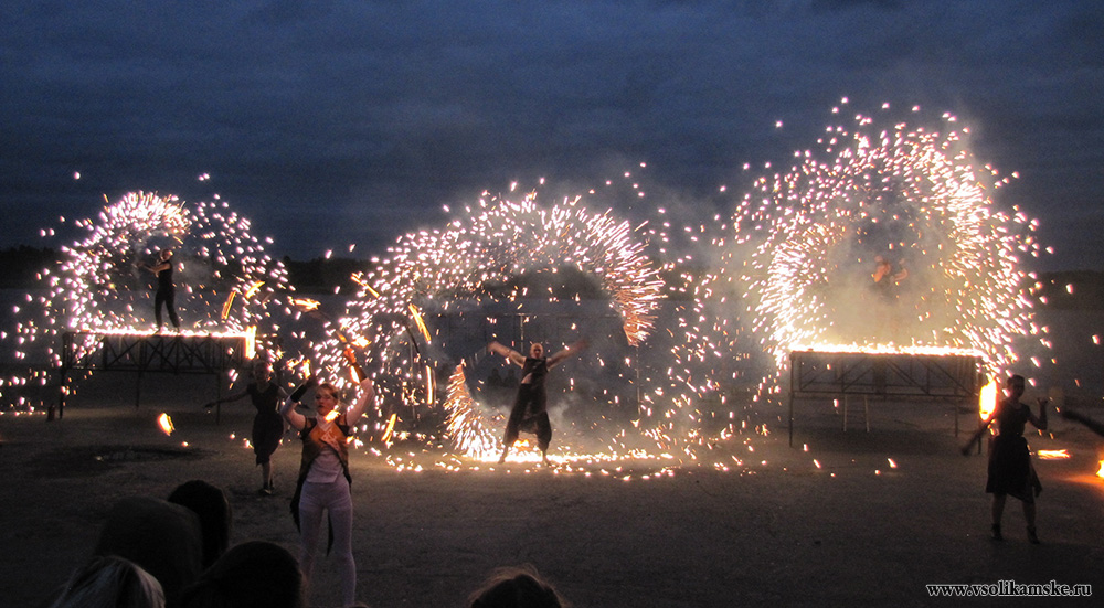 Организаторы объявляют о файер-шоу, которое, уже, идет на территории набережной реки Камы. Спешим туда.