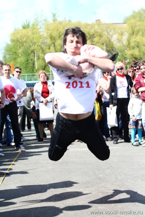 А там – попробуй подымись. Уж куда легче прыжки с места. Муж, жена, а затем еще по разу, но уже с ребенком на руках. Игрушечным, но тоже стремящимся «выпрыгнуть» из пеленок. За каждый сантиметр борются Коновальчуки. И выигрывают!