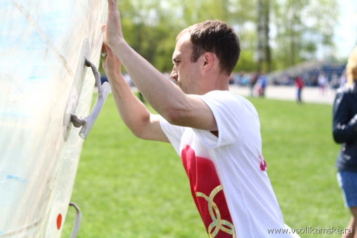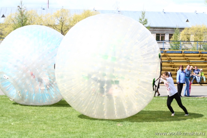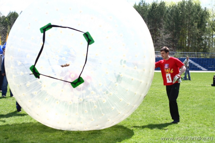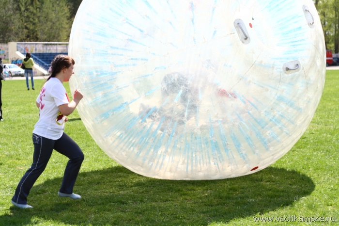 Но если удача в дартсе – дело тренировки, то где взять опыт катания на зорбах? Один пробный заезд, и участники выходят на старт. Вот уж точно: как белка в колесе! Папам удается подчинить себе огромный шар, а мамы передвигаются кувырком.