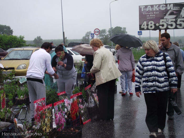 С погодой особо не повезло, поэтому детишкам не удалось покататься на качелях-каруселях, зато торговля шла бойко. Посетителей встречали торговые ряды с разнообразнейшим товаром: от поделок мастеров прикладного искусства до живых растений.