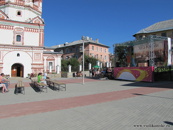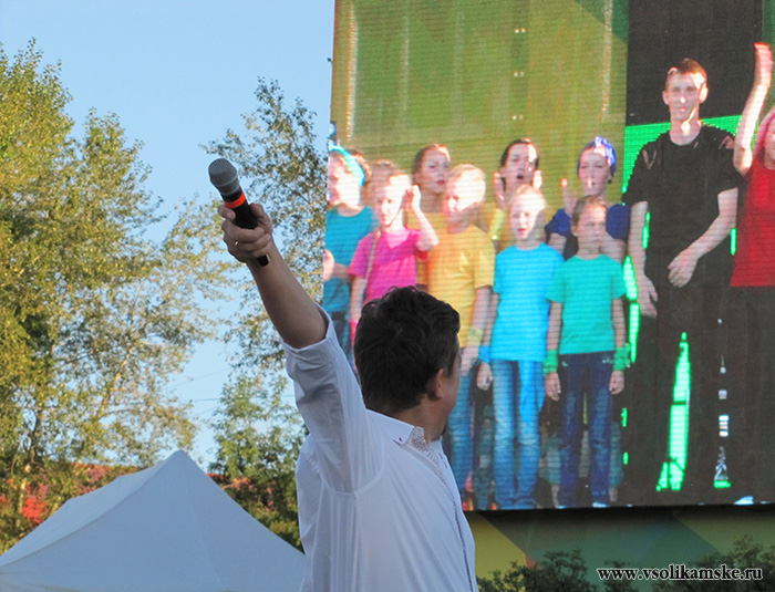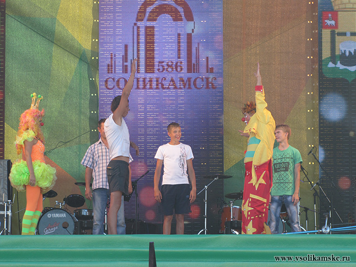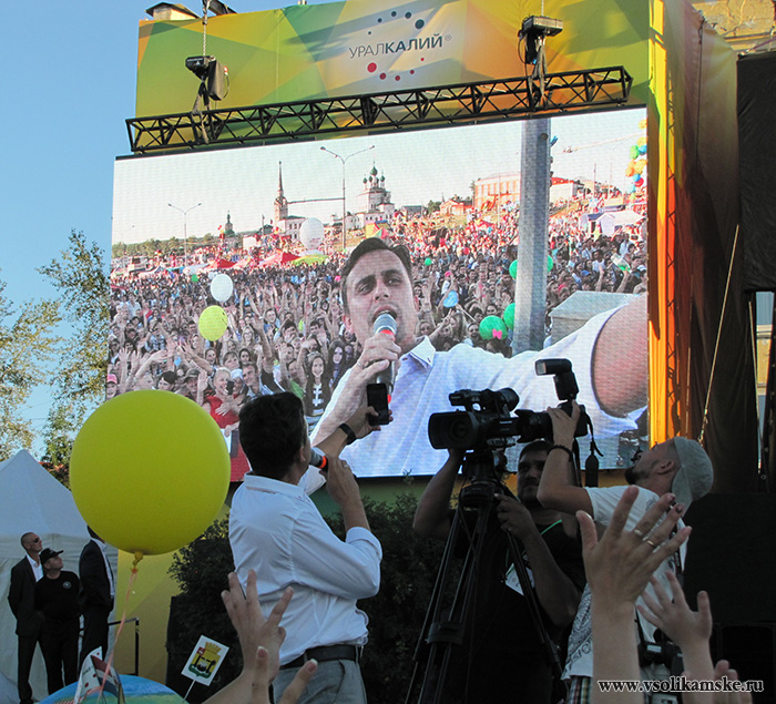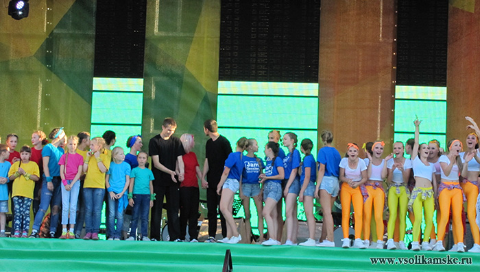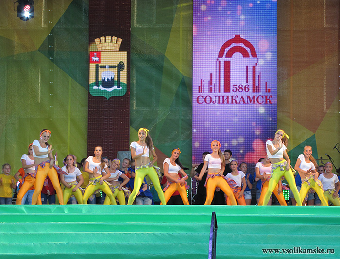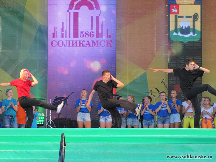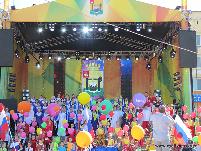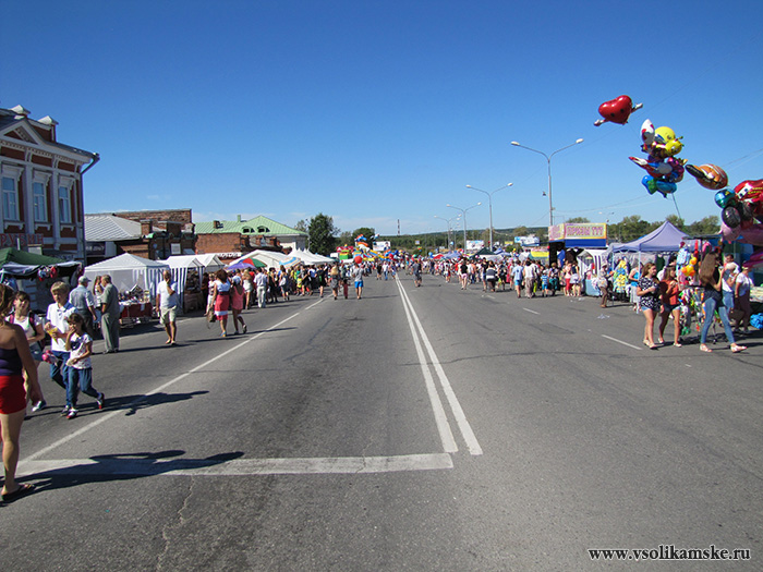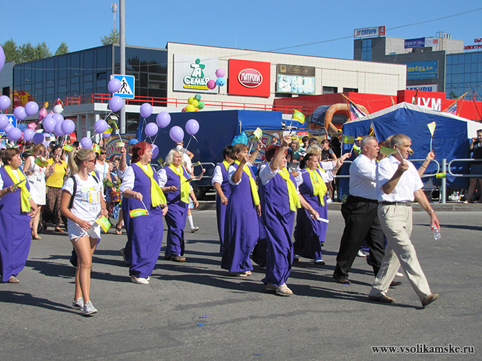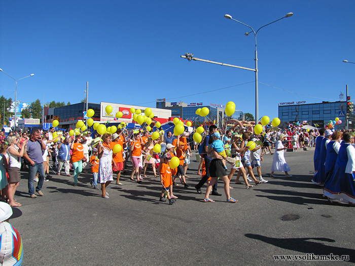На центральном перекрестке началась суета. Всех попросили уйти за ограждения. Наступило время Первого соликамского фестиваля «Городское единство». Около тысячи жителей города прошли колонной. Затем на сцене 4 хора исполнили гимн города.