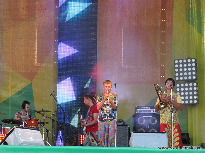 С небольшим опозданием на сцену вышли ВИА «Волга-Волга». Старались. Толпе понравились. Исполняли свои и не только песни под интересную аранжировку.