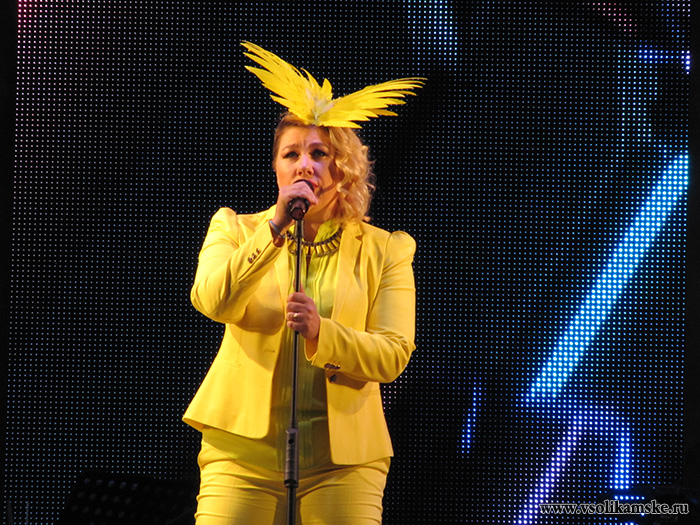 К этому времени у сцены и в центре города скопилось несколько тысяч жителей города. На сцену вышла Ева Польна. Как всегда, в экстравагантном наряде.