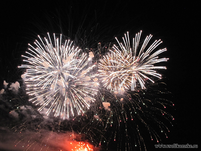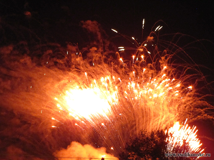 Ровно в 22.50 начался салют. Запускали по традиции с территории за рекой Усолка.