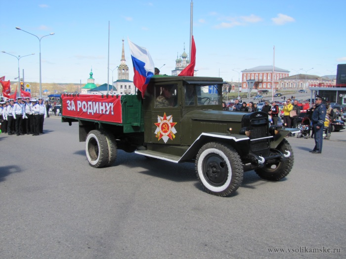 Впереди колонны проехал легендарный автомобиль ЗИС, восстановленный в Автотранскалий.