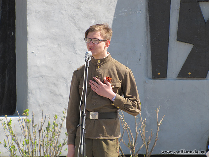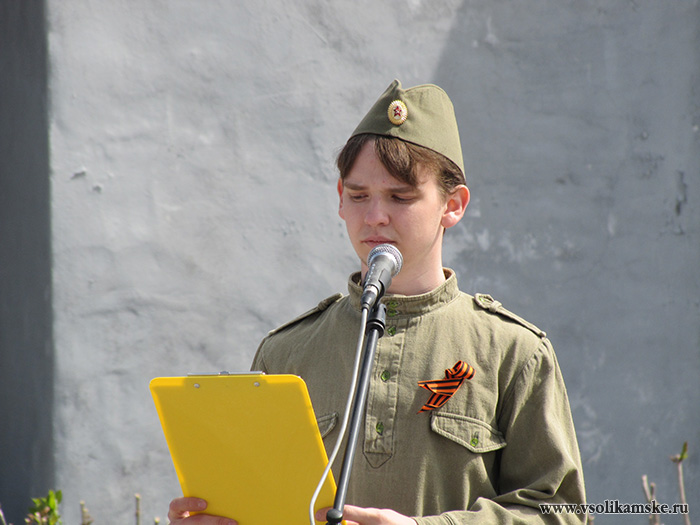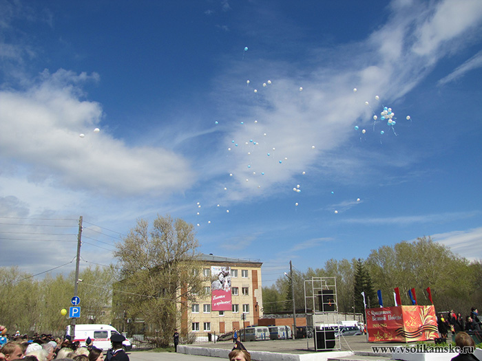 9 мая в Соликамске прошли традиционные митинги в северной и южной частях Соликамска. В Боровске митинг состоялся на площади имени Героя Советского Союза Николая Ладкина, а через два с половиной часа, в 13.00, мероприятие прошло у Мемориала памяти умершим от ран в госпиталях Соликамска.
