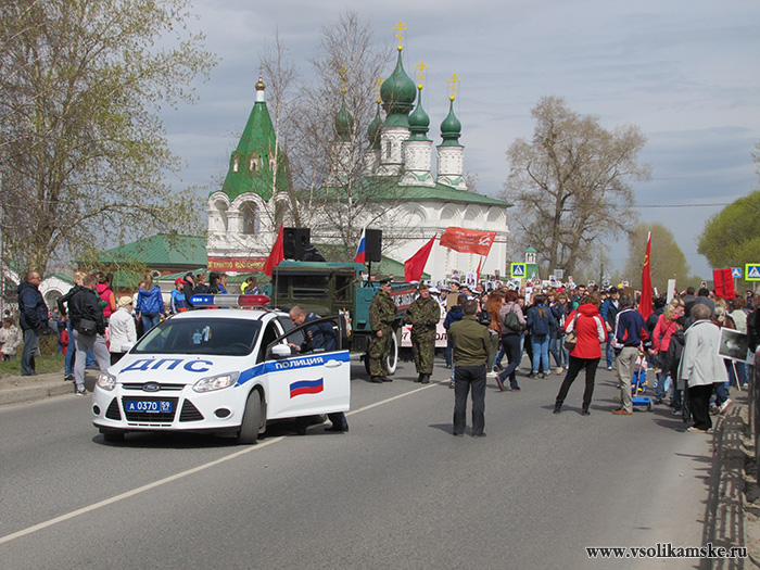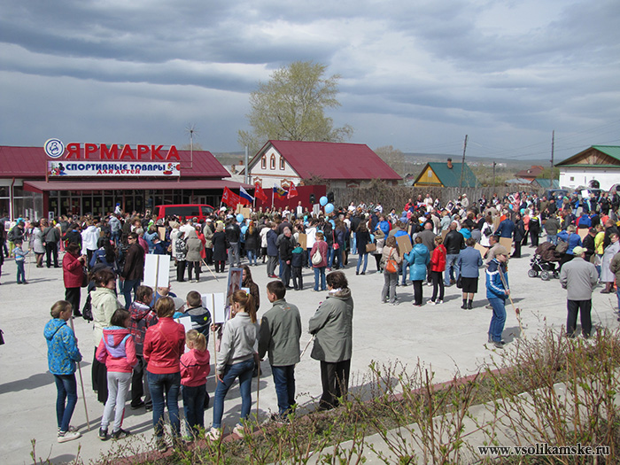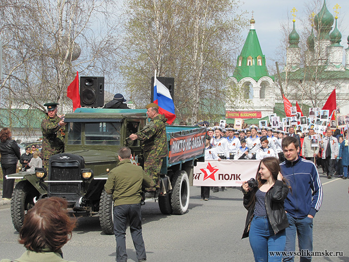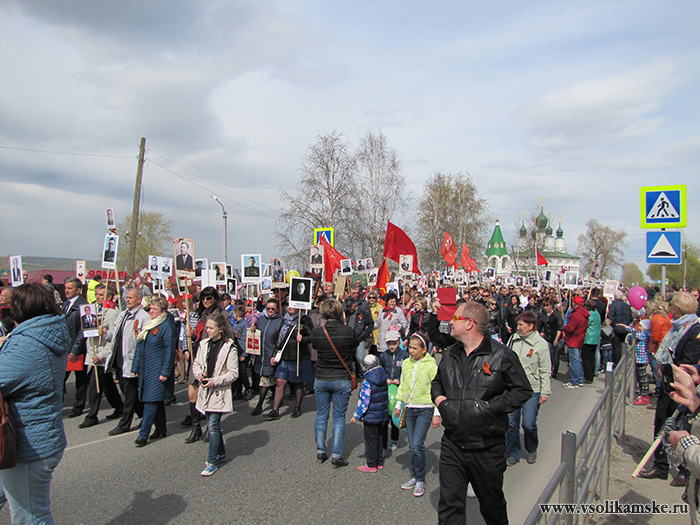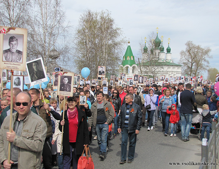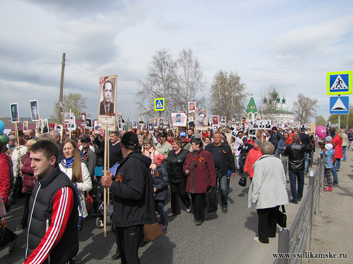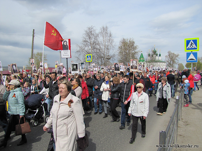 Соликамск в этом году, как и в прошлом, присоединился к всероссийской акции "Бессмертный полк". Колонна участников акции прошла по ул. 20-летия Победы, ул. Революции до Воскресенской площади. В этом году участников набралось на целое мероприятие, которое прошло уже после митинга.