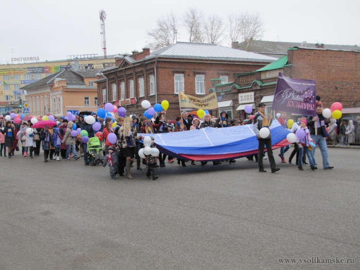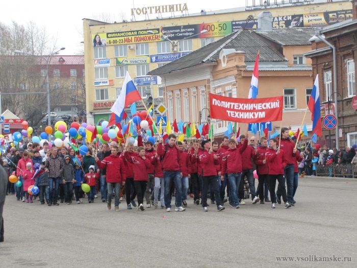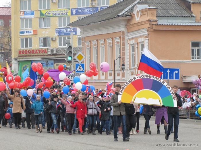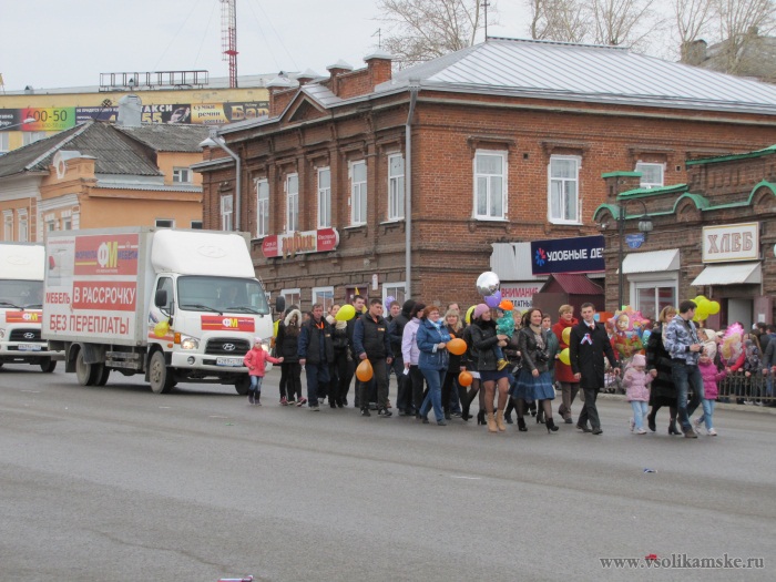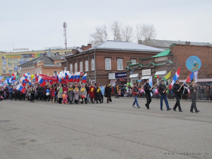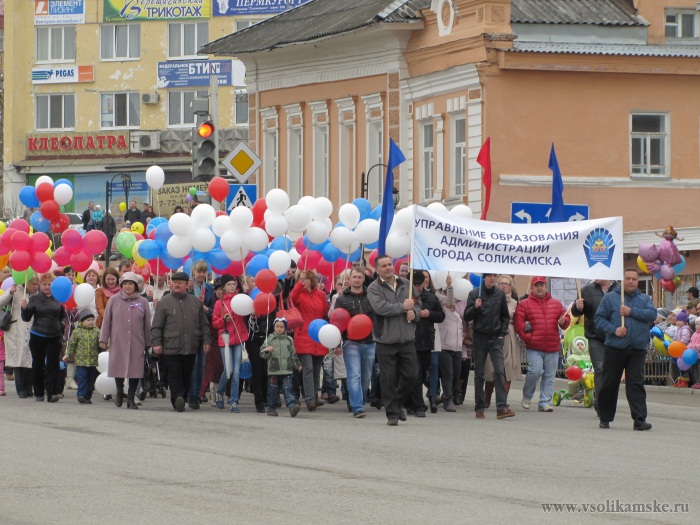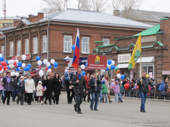 1 мая 2014 года, в четверг, как и по всей России в Соликамске состоялась первомайская демонстрация. Говорить о численности не возьмусь, но участников было много. Подождем пресс-релиза от администрации, они то уж точно посчитают.