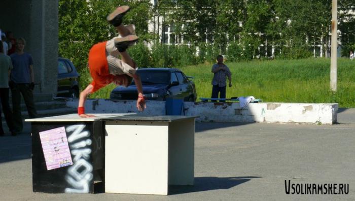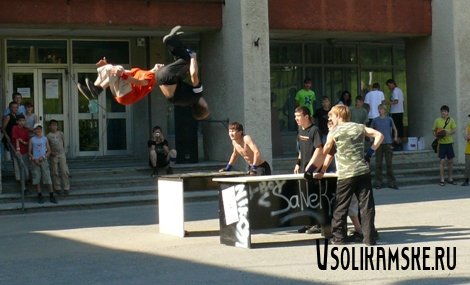 Представителем паркура в Соликамске является команда Generation: Roket, Fisher, Twister, Vert, Ray, Xiw, Def. Огромное спасибо им за предоставленные материалы.