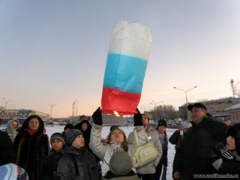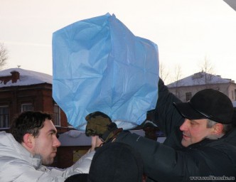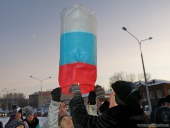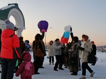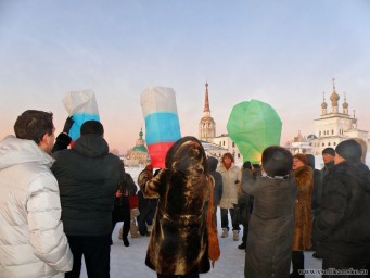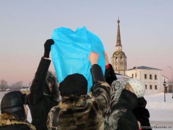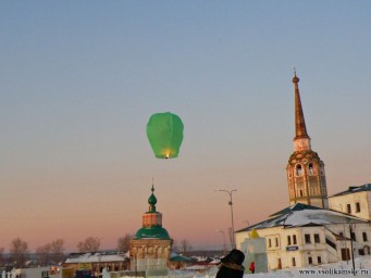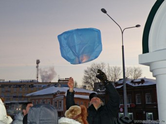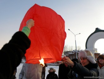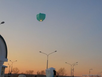 Впервые в в городе запустили дружно на центральной площади китайские фонарики.