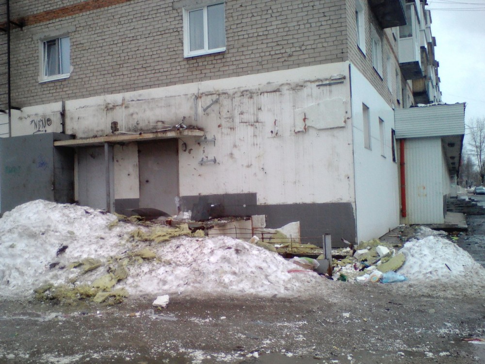И игроки покрупнее тоже вылетают в трубу. Иногда вылететь — вылетают, а потом уходят — некрасиво. Вот что осталось после «Вивата» по Розе Люксембург. Грязь, ошметки утеплителя… Неужели нельзя было аккуратнее провести демонтаж наружного оборудования? Или прибрать за собой?