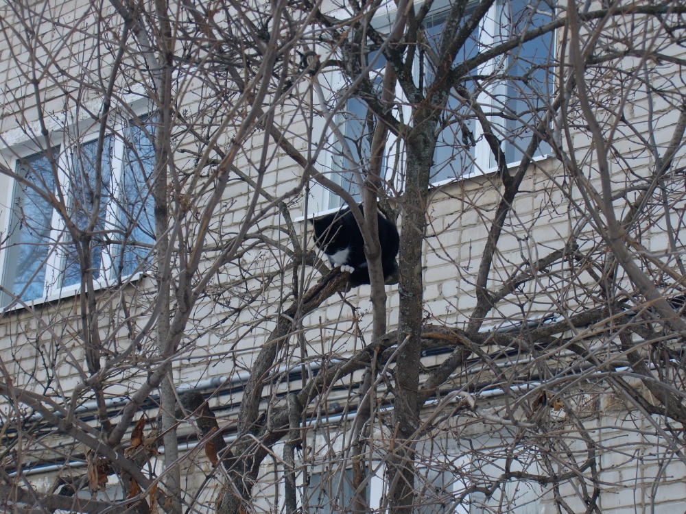 На прошлой неделе было вербное воскресенье, видимо в поддержку этого, на деревьях расцвели коты. Правда, конкретно этот чем-то не доволен.