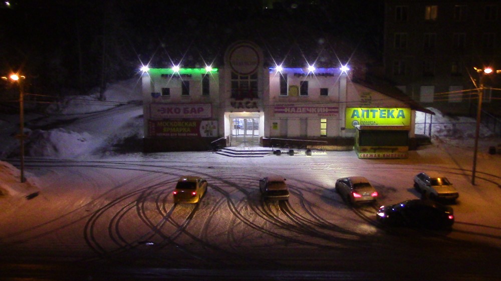 Решил поснимать, и в какой-то момент увидел работу экипажа ГИБДД, ловящего отъезжающие от ночного магазина машины. Оформил в виде клипа.