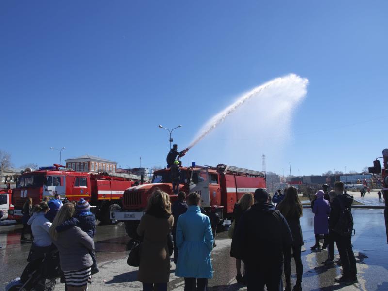 Сегодня на воскресенской площади пожарные демонстрировали свою технику к огромной радости юных жителей Соликамска.