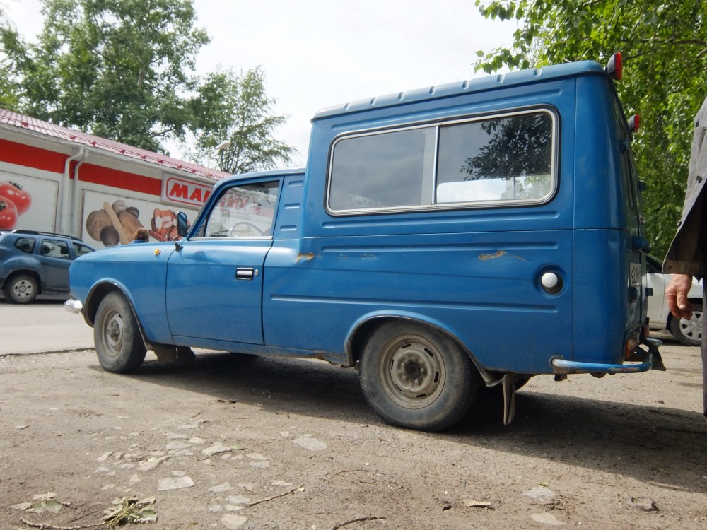 Честно говоря, в первую минуту не поверил своим глазам, увидев на стоянке возле «Магнита» вот эту машинку. Думал, что подобных уже не осталось, хотя 412-е Москвичи кое-где еще встречаются (больше вследствие своей массовости), но фургоны, да еще в пассажирском варианте, вымерли уже давно.