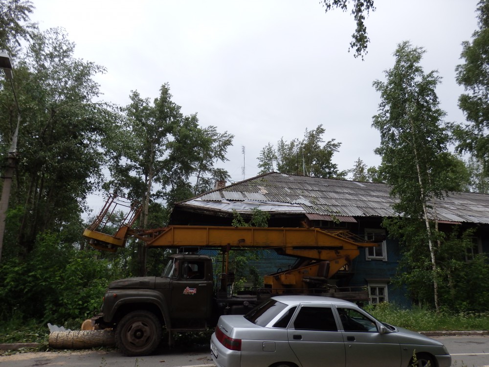 Погода нынче удивляет, вот уже и врачи заговорили о появлении диагноза «летняя депрессия». Наверняка сильно расстроились и недалеки от депрессии жильцы дома по ул. Степана Разина, 13. Ветерок, что разгулялся вчера, вырывал деревья с корнем, и парочку деревьев обрушил на этот дом… Я фотографировала сегодня, когда последствия стихии почти были ликвидированы. Представьте силу ветерка)