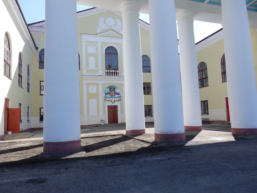 Благоустраивается не только фонтан, но и вся прилегающая к ДК территория. похоже работы идут и внутри здания.