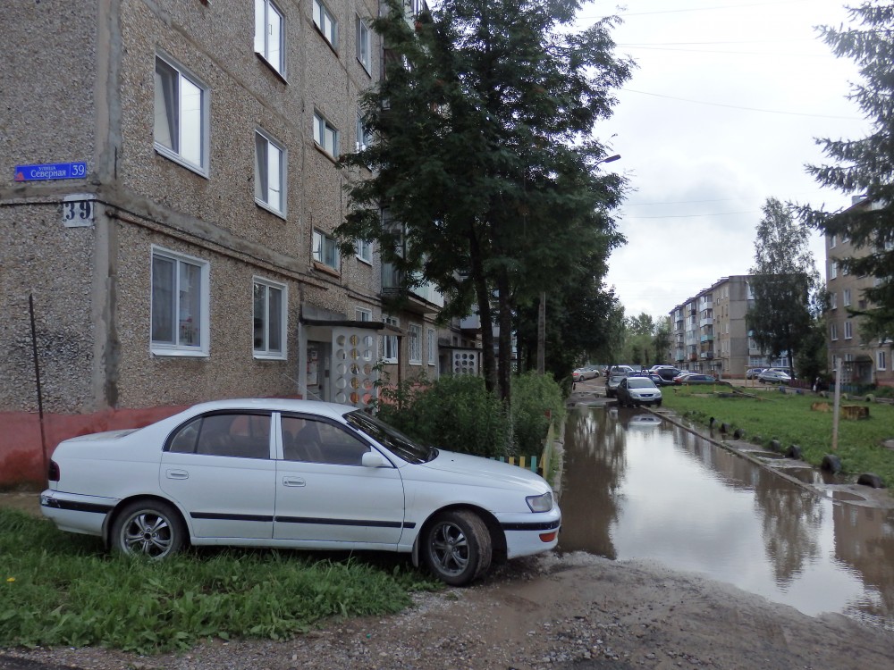Вот Северная, 39. Жила тут в 80-90-е годы прошлого столетия. Всё время жители этого дома страдают от отсутствия каких-либо стоков, а значит «мирятся» с огромной лужей, которая стоит перед домом осенью, весной и летом… Вот вид с другой стороны дома