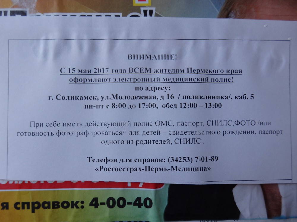 И второе мое околомедицинское дело — получение электронного полиса. Увидела недавно на доске объявлений у подъезда такое: