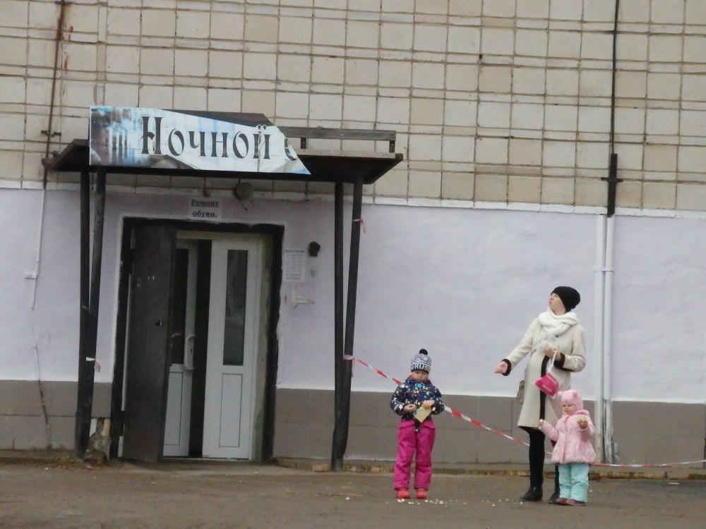 Ночной ремонт обуви — очень актуальная вещь! Кстати, насколько я помню, этот бар ранее располагался в доме ниже, но жители сумели с помощью жалоб через суд выселить его… в том месте теперь «Красное и белое», а ночной бар переехал в соседний дом.