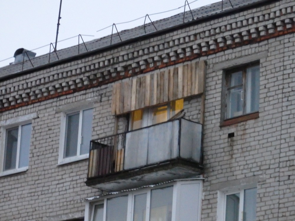 А здесь не хватило рам — обычно вижу, что жители стараются увеличить площадь балкона, но чтобы в сторону уменьшения — в первый раз увидела)