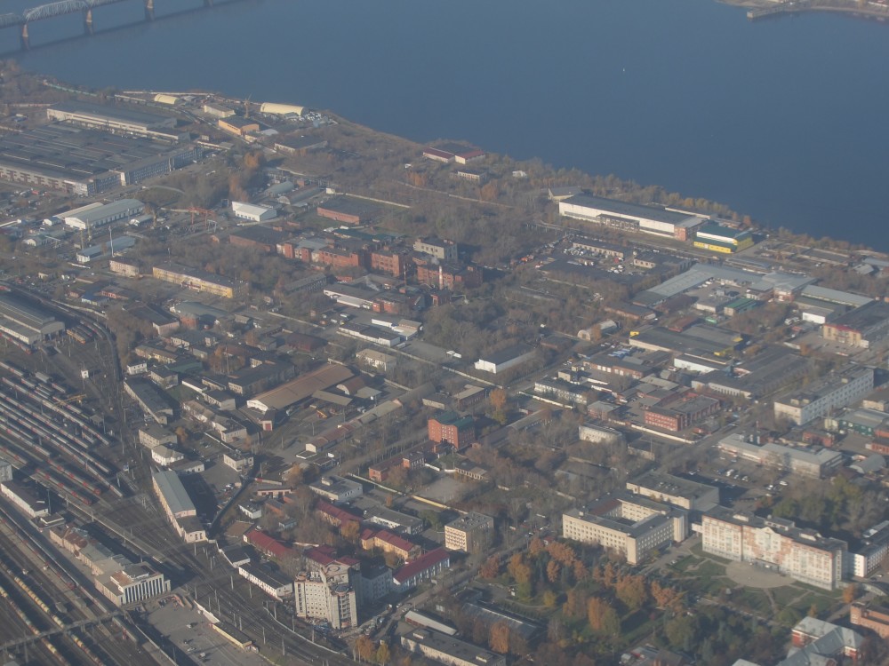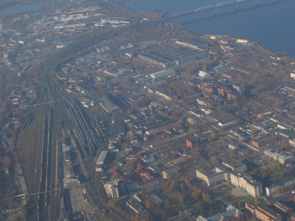 Вот и центральная часть города, под нами — ж.д станция «Пермь 1», но, к сожалению, её не видно.