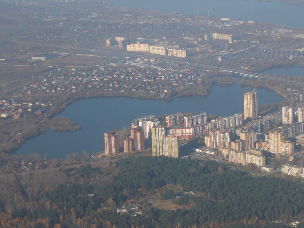 Наконец получено разрешение на посадку, и после очередного разворота, над п.Кондратово, идем над шоссе Космонавтов в сторону аэропорта Б.Савино.