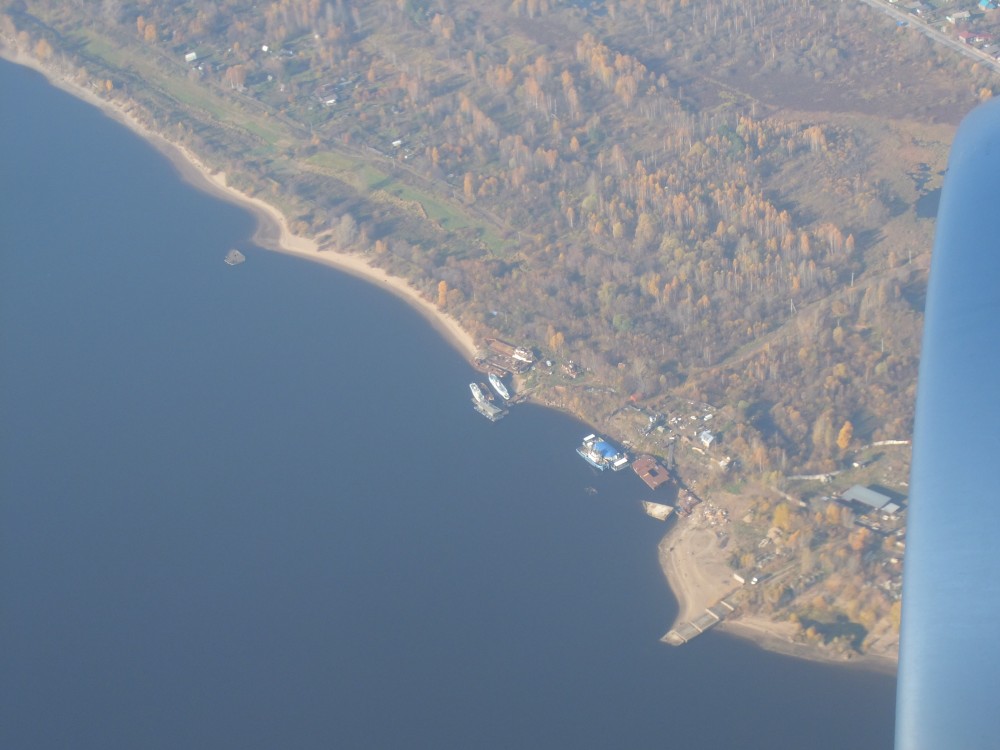 Пересекаем Каму, и летим в сторону центральной части Перми. Видны какие-то причалы.