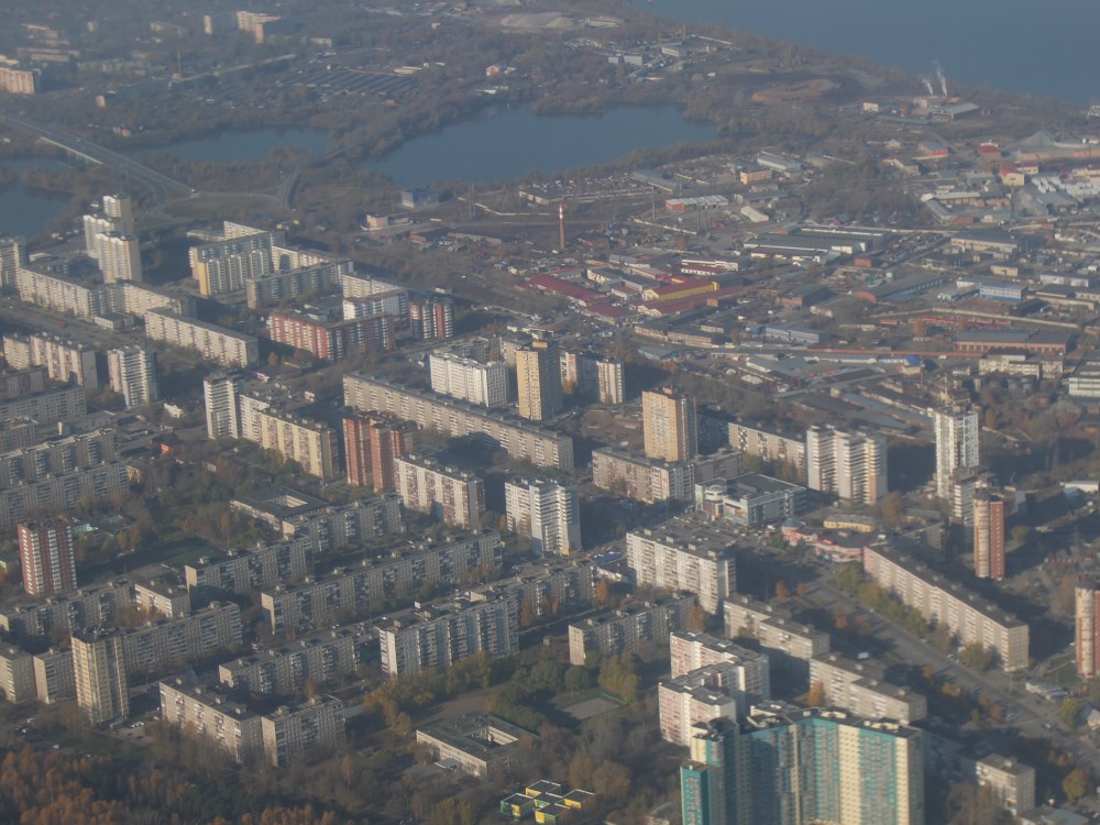 Правобережная часть города, если не ошибаюсь, Дзержинский район. Далее начинаем забирать вправо, и пролетаем над Камской долиной.