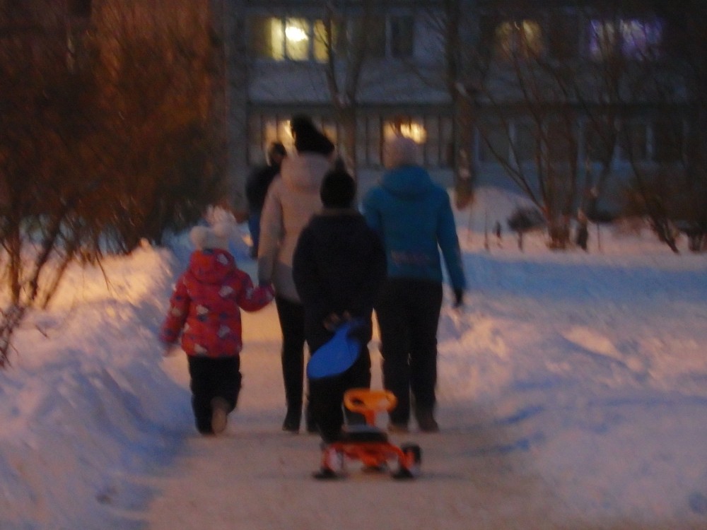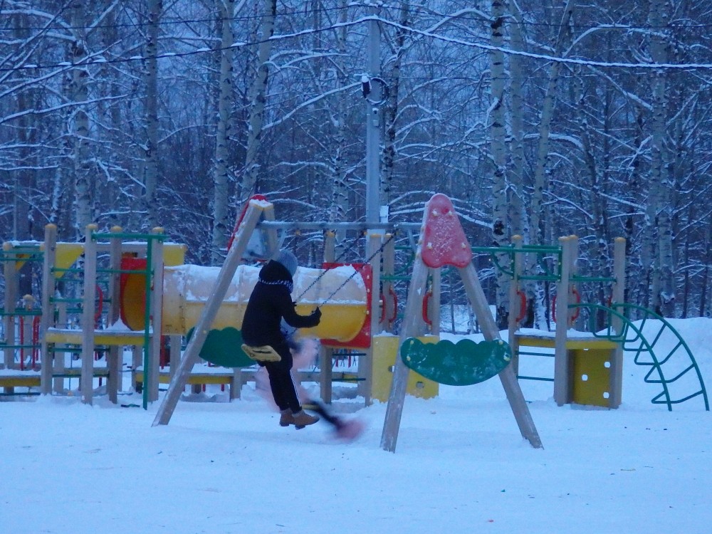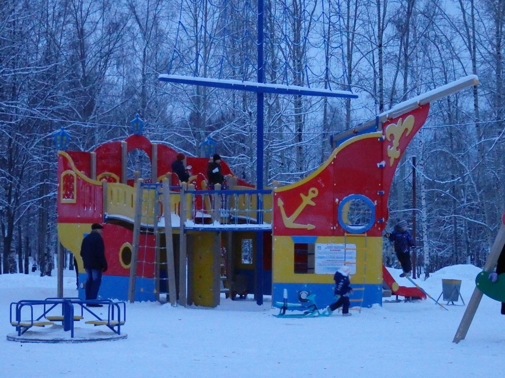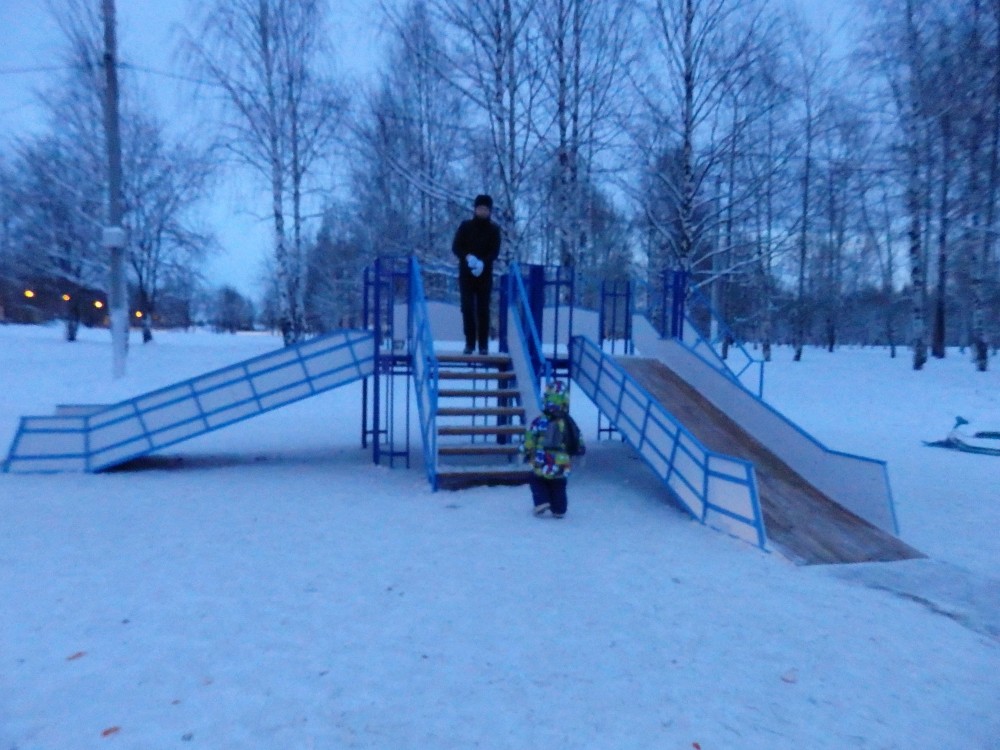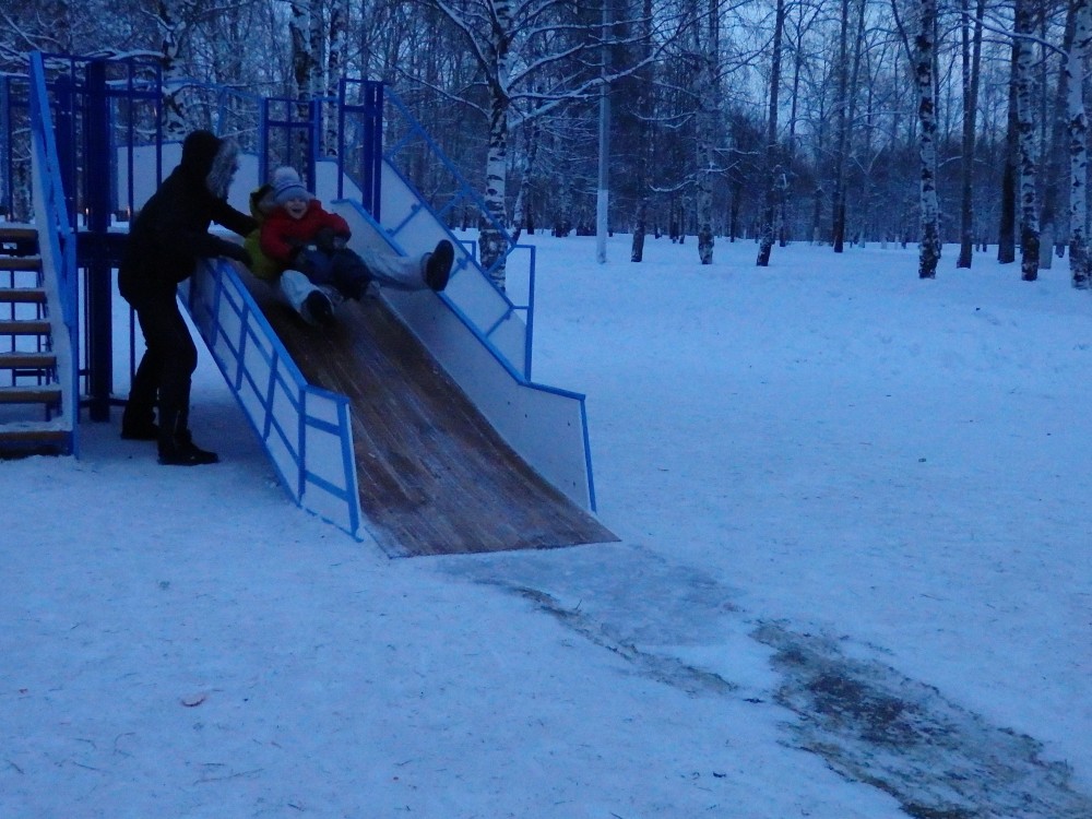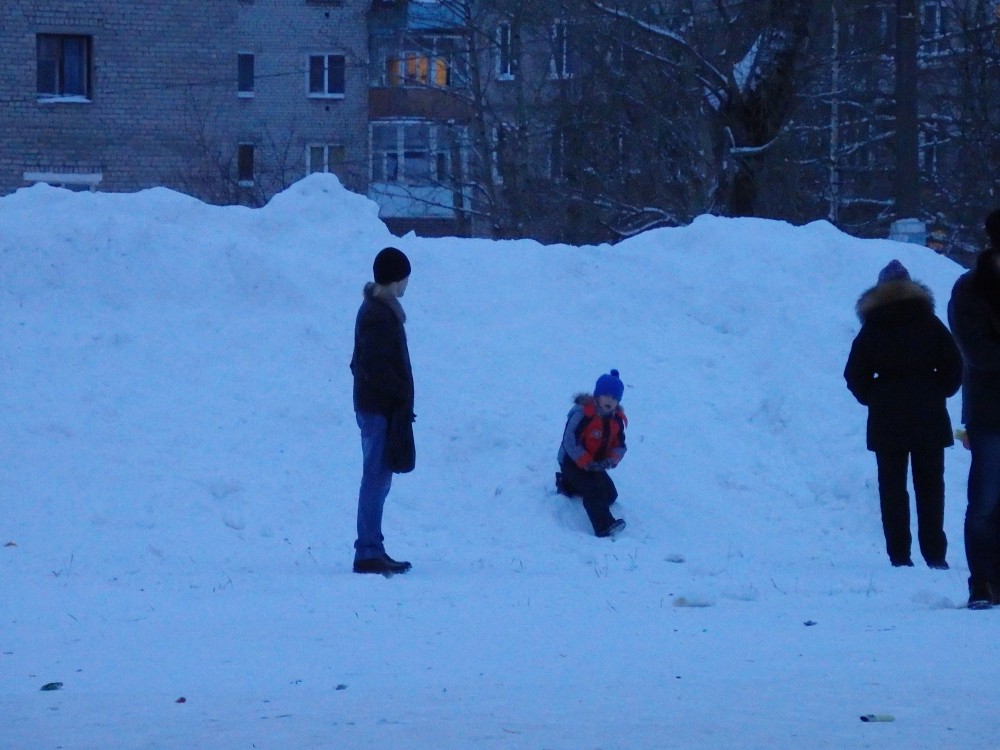 Детям интереснее кататься со снежных завалов, «обрамляющих» площадку