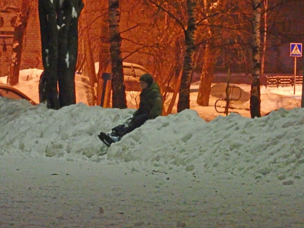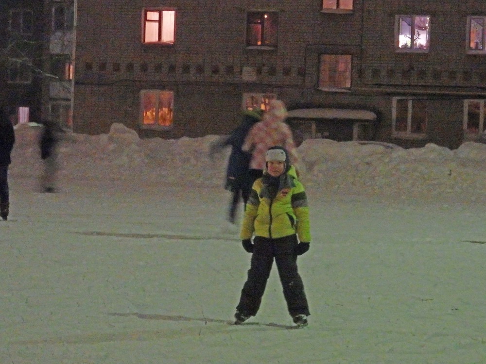 Я, правда, не поняла, платный лед или нет, никаких объявлений нет. Катается с десяток детей: «фигуристы» и «хоккеисты».
