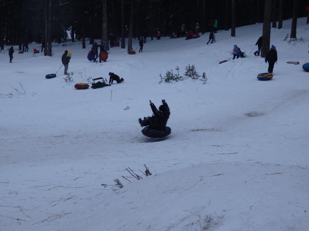 Лыжи, снегокаты, ватрушки, тюбинги, санки… в руки и вперед! И вот ты уже летишь с горы в снежных брызгах, направляя свой «снаряд» на горки или объезжая их (это уж кому как угодно).
