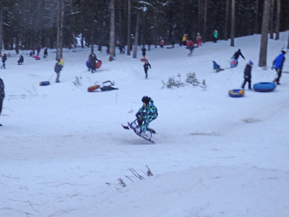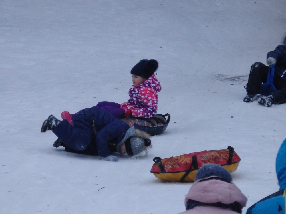 Только вот проблема: скатившись вниз с горы, надо тащить санки, ватрушки, снегокаты наверх! Подъемников не предусмотрено!