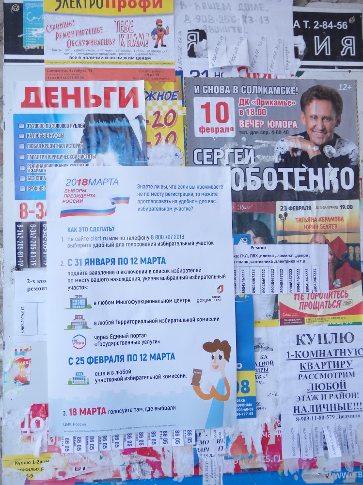 3) Все кругом только и говорят о выборах! Тренд сезона — герои сериала «Молодежка» не раз обсуждали эту тему — видимо решили даже так молодежь мотивировать отдать свой голос. А у нас на подъезде повесили вот такой плакат.