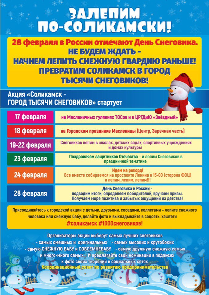 17 февраля в городе стартовала акция «Соликамск — город тысячи снеговиков».