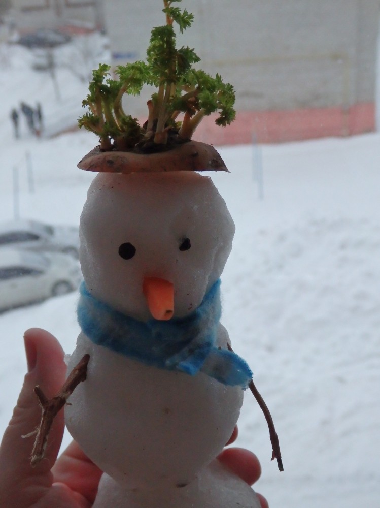 А потом фото вашего снегомэна надо выложить в соцсеть с хэштэгами, указанными в заголовке моего поста.