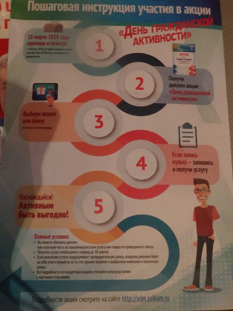 В одной из соцсетей среди соликамцев даже возник спор, некоторые считают, что эти акции — подкуп избирателей. Я так не считаю — подкуп, это когда тебе платят за выбор определенного кандидата, а тут власти пытались стимулировать гражданскую активность. Нужно было прийти и проголосовать — хоть за кого, за кого считаешь нужным. К сожалению, часть соликамцев к выборам относится вот так: