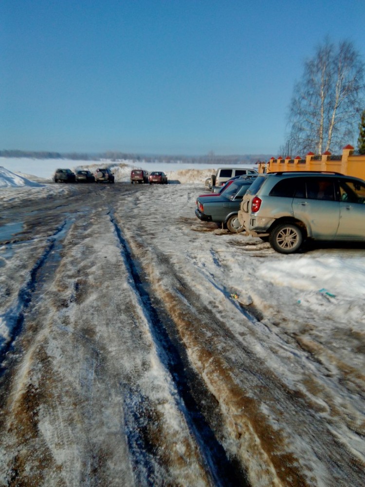 Состояние льда видно по стоянке у пристани: ночью подмерзает, вечером всё тает и ночью снова схватывается колеями.
