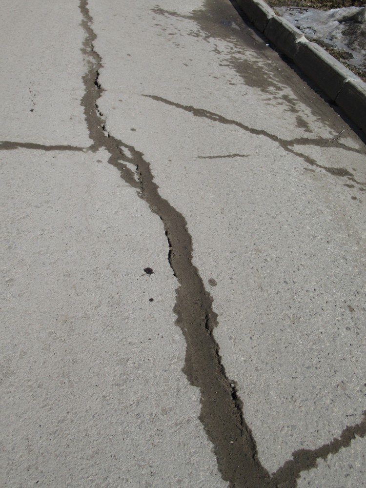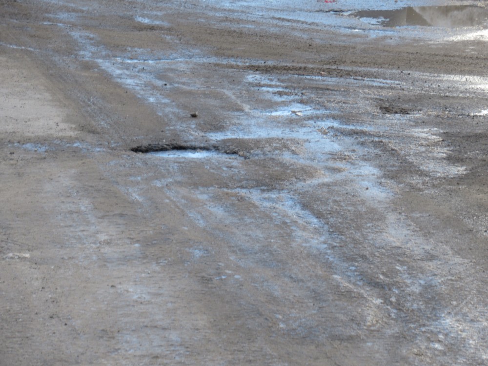 А там, где поток движения машин особенно интенсивен, возможно скоро случится проседание или мини-провал. Мне кажется, невооруженным взглядом видно!