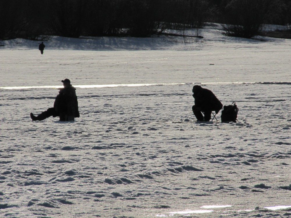 Поехали на Каму, посмотреть, как там дела. А тааам… Весной если и пахнет, то совсем чуть-чуть. Беззаботные рыбаки возвращаются со льда, кто с уловом, а кто без.
