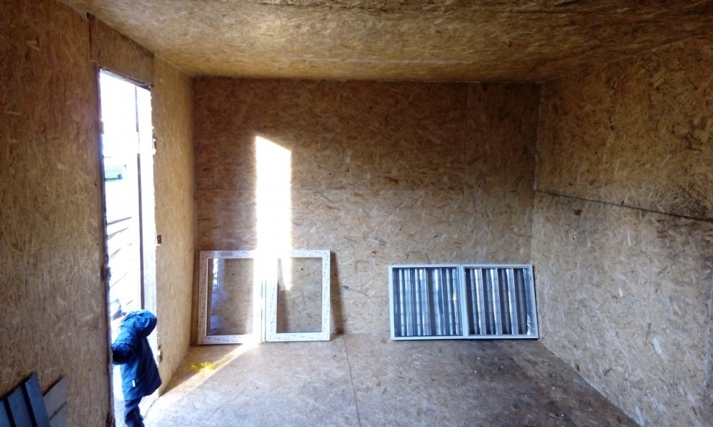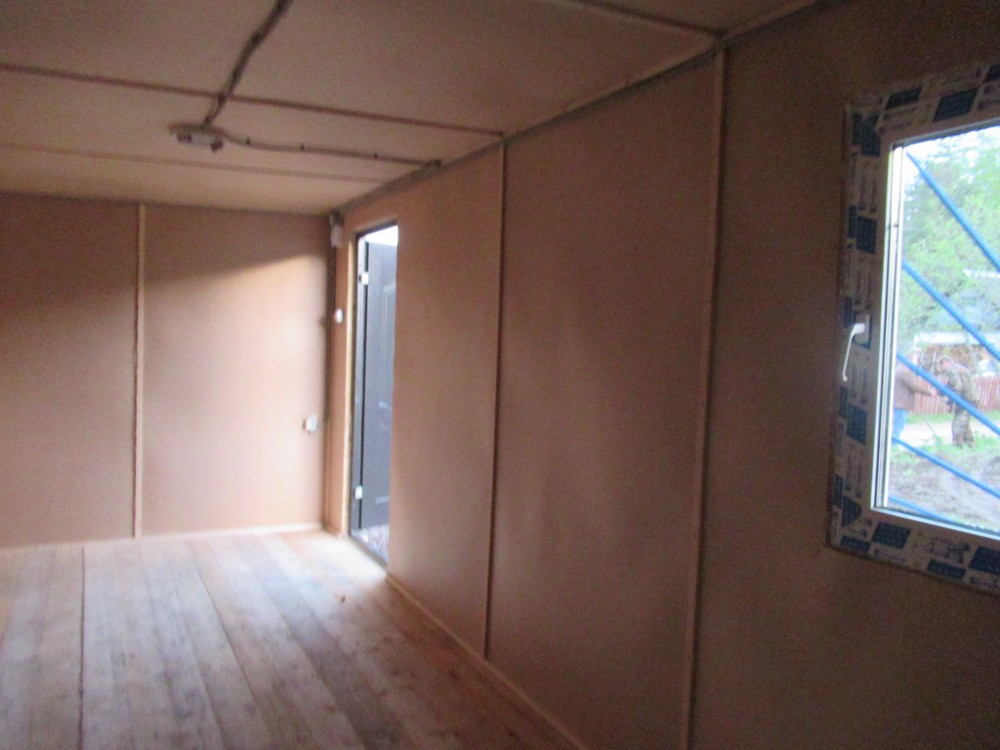 «Внутренности» бытовки: скоро здесь появится линолеум и мебель, а осенью муж сделает тамбур и обошьет всё отшлифованной дюймовкой.