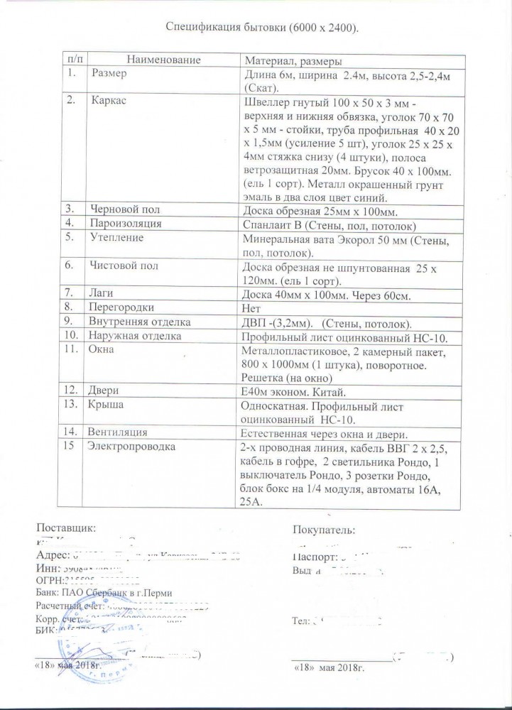 Еще одно объявление привело меня на сайт изготовления и продажи бытовок — Супермаркет бытовок. Не знаю, можно ли давать здесь его адрес… потому не буду. Сайт показался мне грамотным, всё было доступно расписано, имелись в наличии чертежи, описание различных вариантов бытовок, образцы выполненных работ. В общем, сайт внушал доверие, а потому я написала по указанному электронному адресу письмо с вопросом о доставке в Соликамск. Уже через 5 минут мне перезвонили на мобильный и ответили на все мои вопросы. Показала вечером сайт мужу. Мы поразвлекались с калькулятором бытовок, прикидывая, что можно заказать. На следующий день я пробила данные о владельце этого предприятия. Владелец работает 2 года и даже исполнил 1 госзакупку. Никаких плохих данных об этом человеке в сети не было, что радовало. Но удивляло, почему и хороших отзывов нет? В общем так и так, выходило. что купить бытовку нам негде. Потому решили рискнуть и брать самый дешевый стандартный вариант здесь. (за «подороже» возможен любой каприз клиента). Честно, было страшно, а вдруг — обманут… Но кто не рискует… Калькулятор насчитал нам 81700 рублей, через сайт отправили заявку, спустя 15 минут нам перезвонили из фирмы и обговорили все нюансы заказа, попросили паспортные данные для составления договора. Через полчаса по электронной почте нам скинули договор. Стоимость бытовки оказалась дешевле, чем насчитал калькулятор — 77 тыс., скидка! предоплата — 4 тыс. Вот что мы заказали: