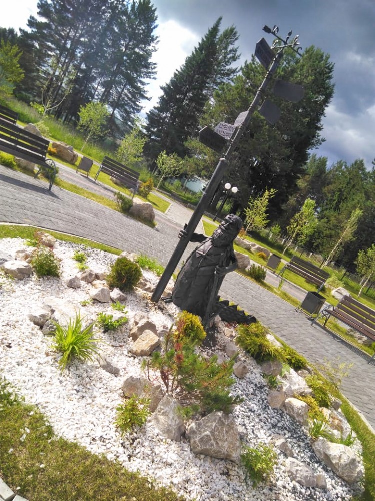 В центре этой композиции стоит верстовой столб, на вершине которого указаны направления во все поселения Соликамского района.