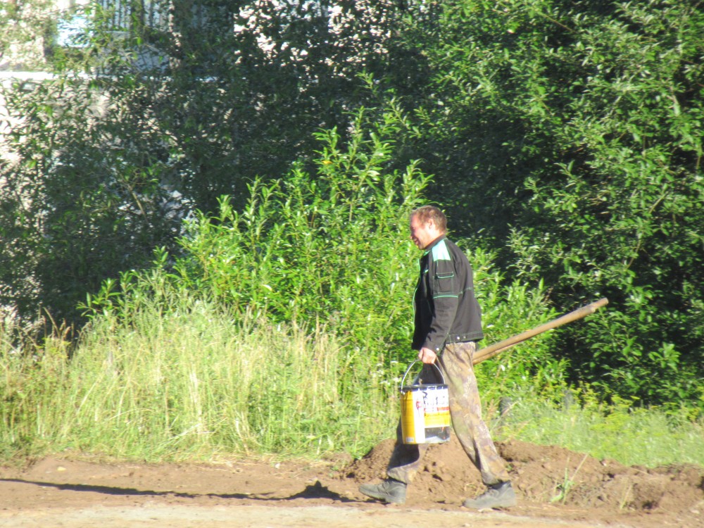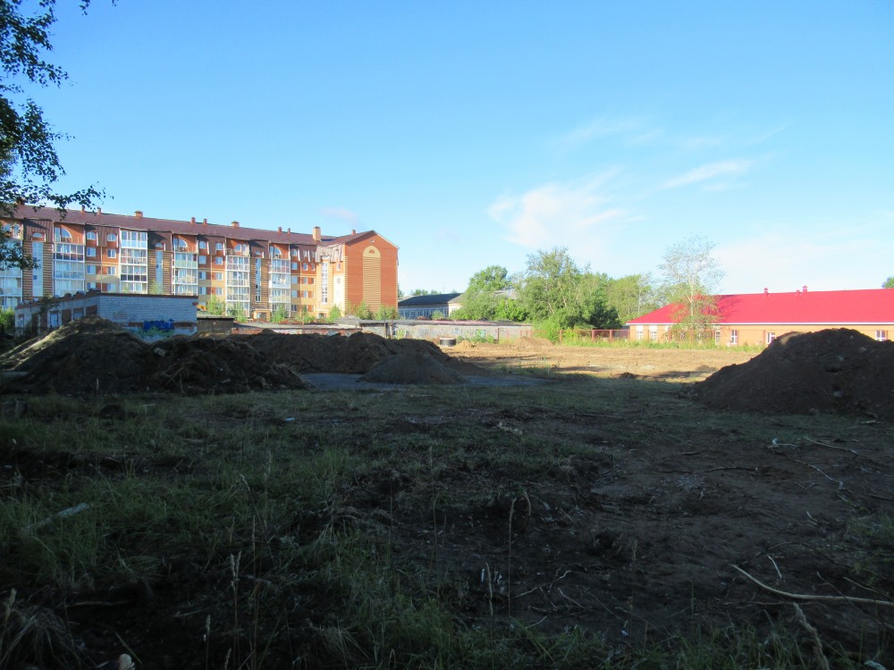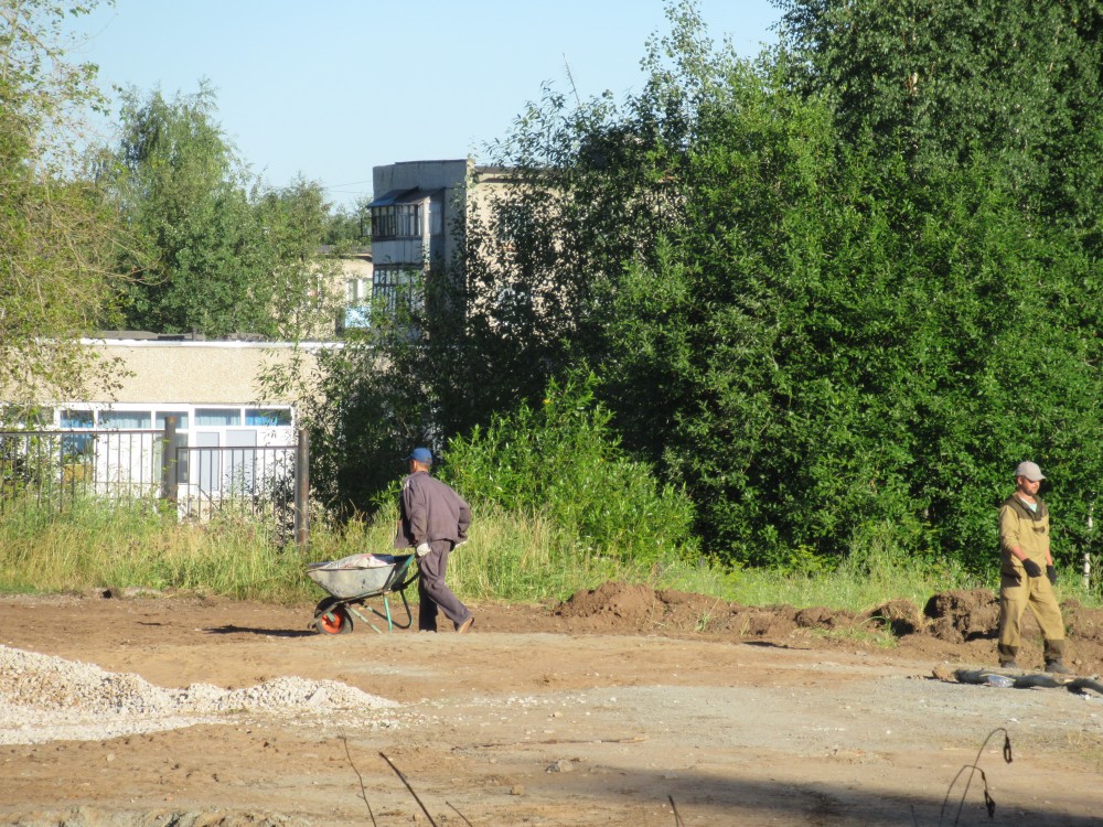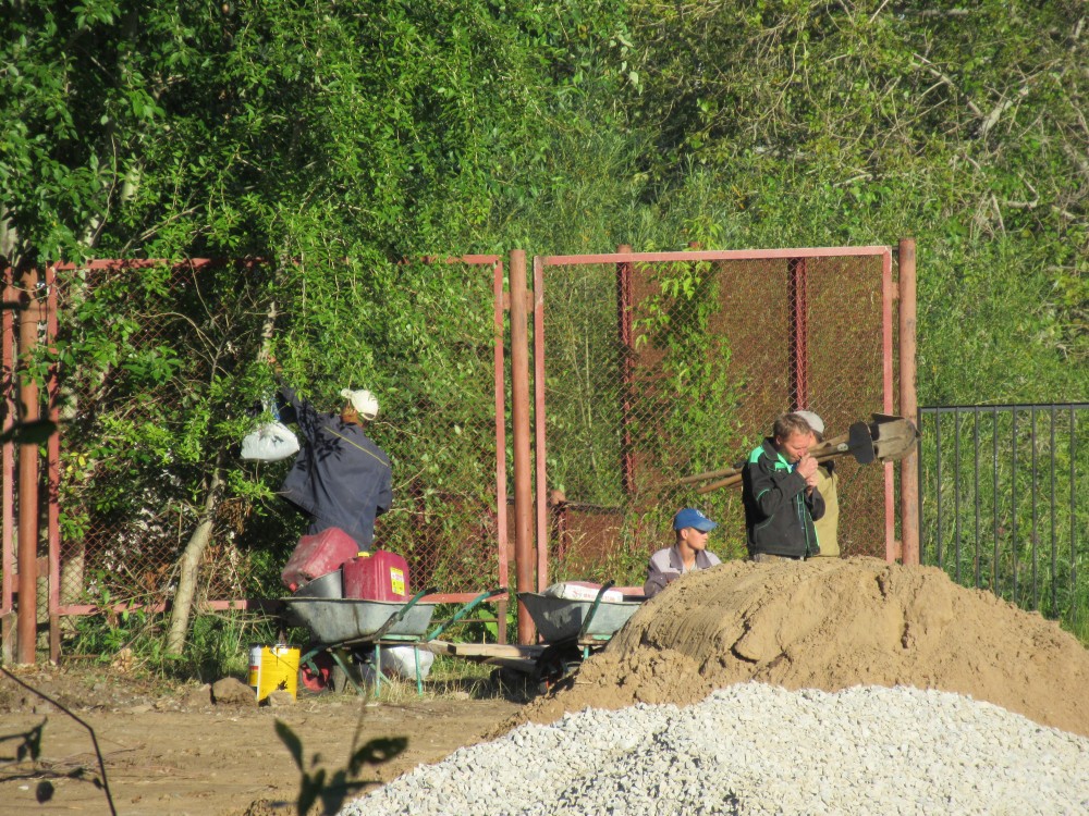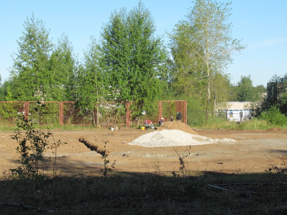 Пустырь частично перекопан, убраны старые конструкции, завезены щебень, земля… Работы начинаются с раннего утра.