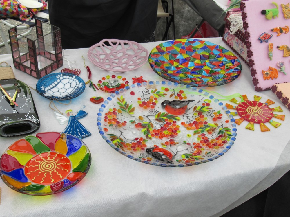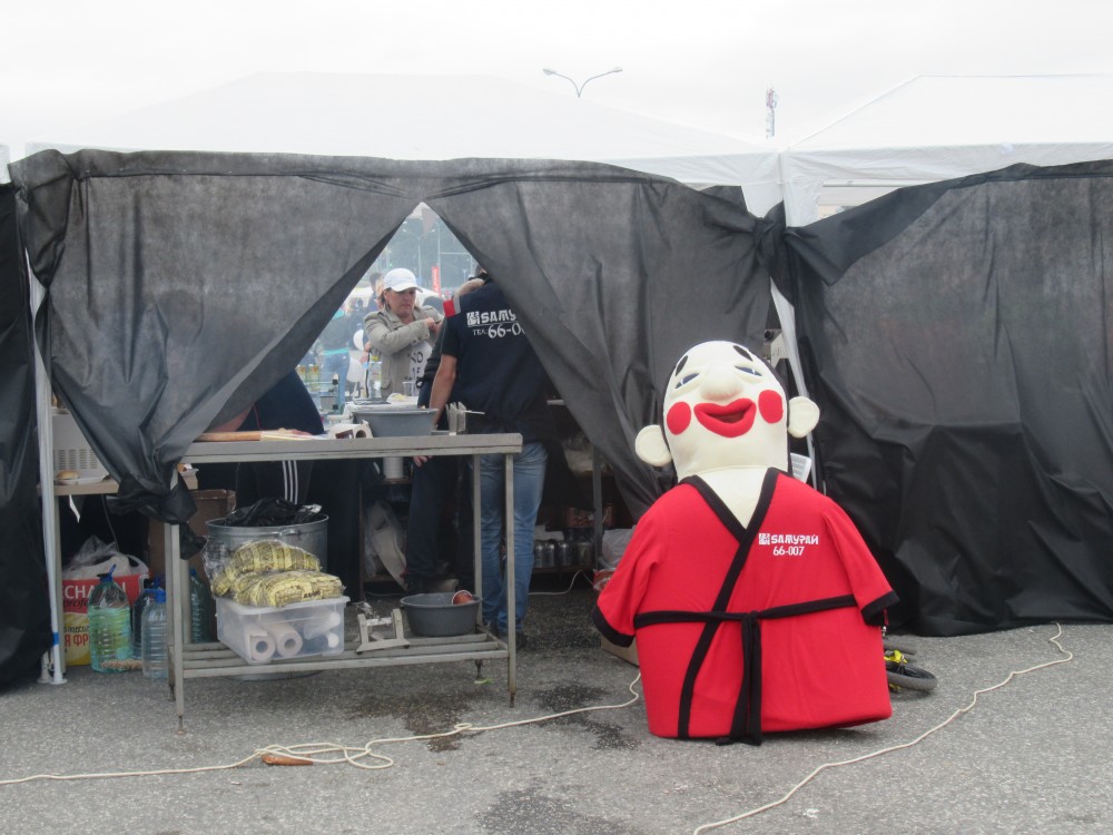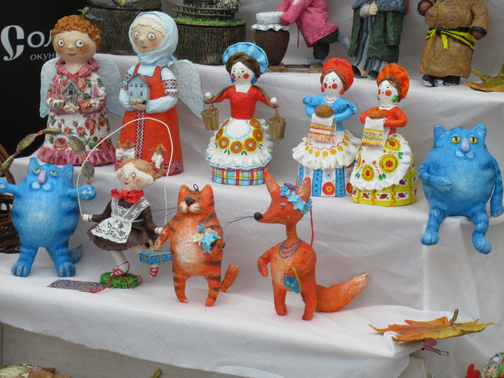 Наличие маленького ребенка не дает особо разгуляться, но всё равно сегодня мы отправились днем всем семейством в центр города. Гуляли по всем площадкам три часа, пока дочь не устала. Было много интересного, красивого и удивительного. Поразило, что в этом году даже у всех продавцов единая форма-фартук. Правда непонятны черные шары, использованные в оформлении торговых рядов. Почему именно черный цвет?